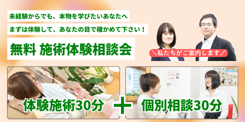 また、初めて施術を学ぶ方には、形だけの手技にとらわれることなく、身体の見方や触れ方の基礎から丁寧に学び、安心して実践を重ねていけるよう、一人ひとりのペースに合わせた指導を行っています。